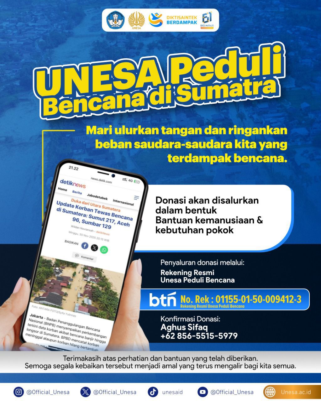 Magetan, 3 Desember 2025 — Universitas Negeri Surabaya (Unesa) kembali menunjukkan kepeduliannya terhadap bencana nasional dengan meluncurkan gerakan Unesa Peduli Bencana Sumatera. Aksi ini digelar sebagai bentuk solidaritas untuk membantu warga